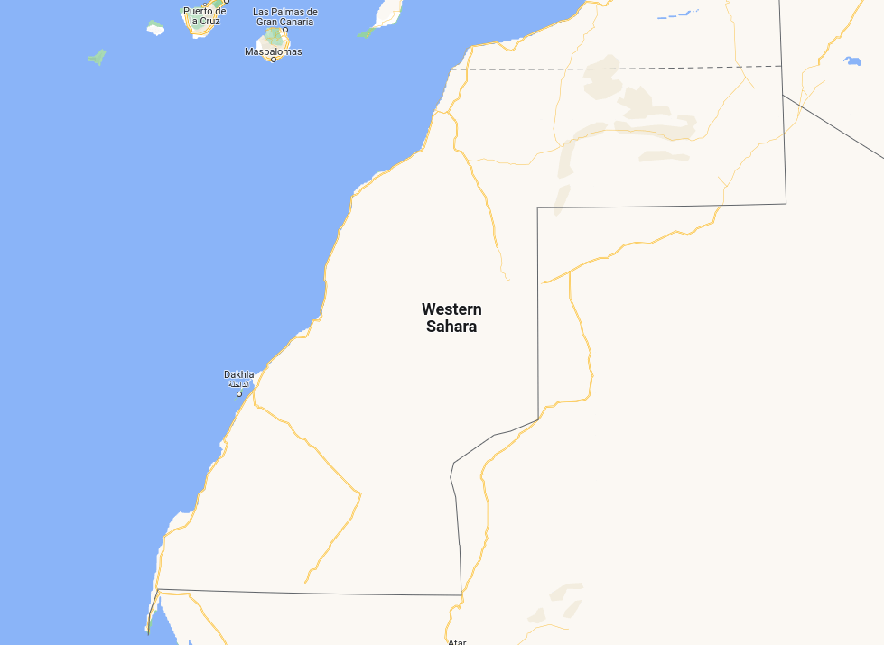 There are many examples of disputed territories around the world. The territory called Western Sahara, for example, is disputed between Morocco and the self-proclaimed Sahrawi Arab Democratic Republic. Morocco has de-facto control of a large portion of the territory. At the time of writing, the only other UN member state recognizing Morocco’s claim over the Western Sahara territory is the United States. As you can see below, Google Maps and OpenStreetMap made different choices when rendering this area: